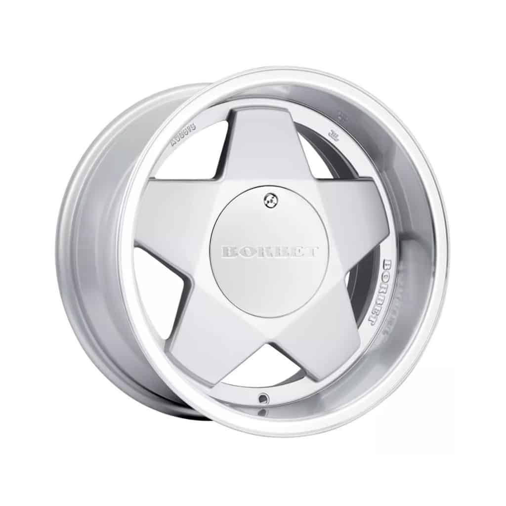 Borbet A Flat Cap, Polished Silver 15 and 16-inch Alloy Wheels (Set of 4 wheels).